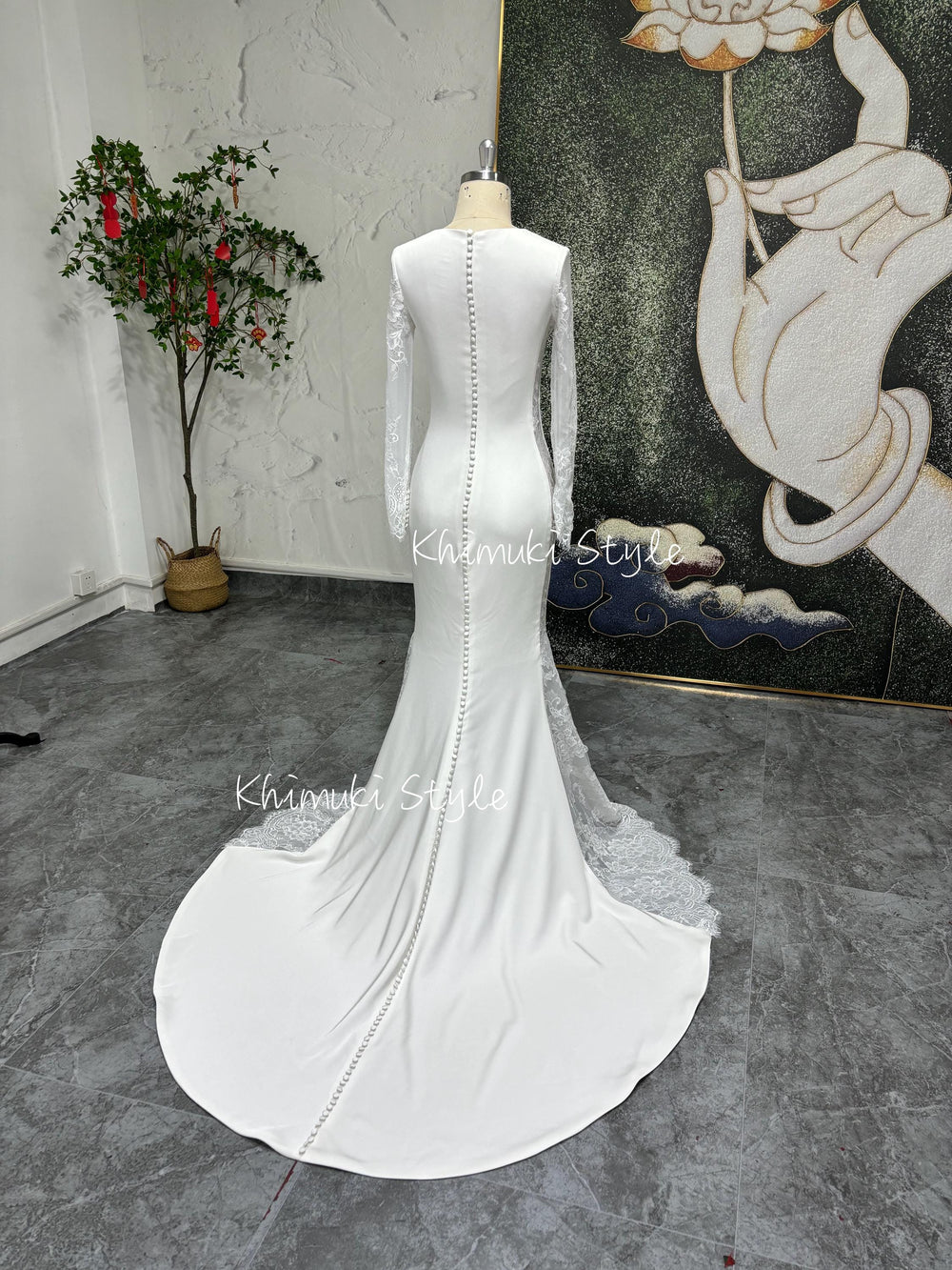 Sheath Long Sleeve Wedding Dress,Modest Wedding Dress