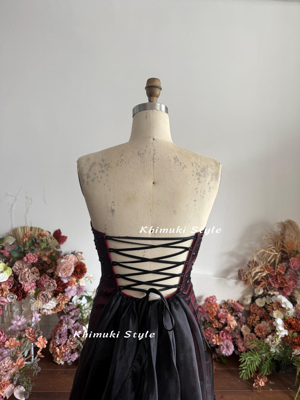 Sexy Back Prom Dress,Vintage Black and Red Party Dress