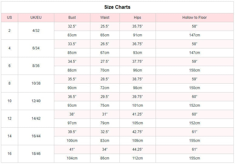 ***Please the bust sizes is not your bra sizes.Wear an unpadded bra (your dress will made with bra) when you measure bust sizes.