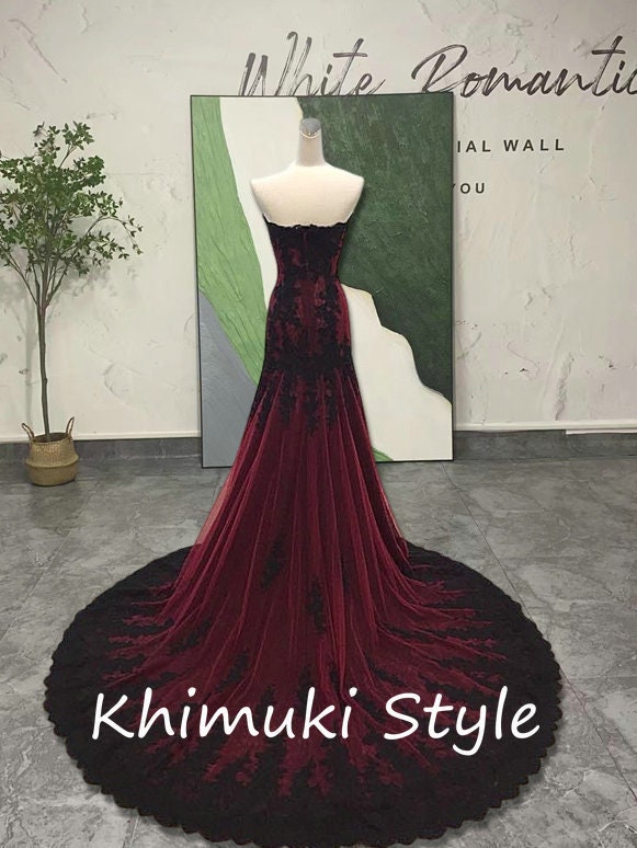 Sweetheart Black and Burgundy Lace Wedding Dress