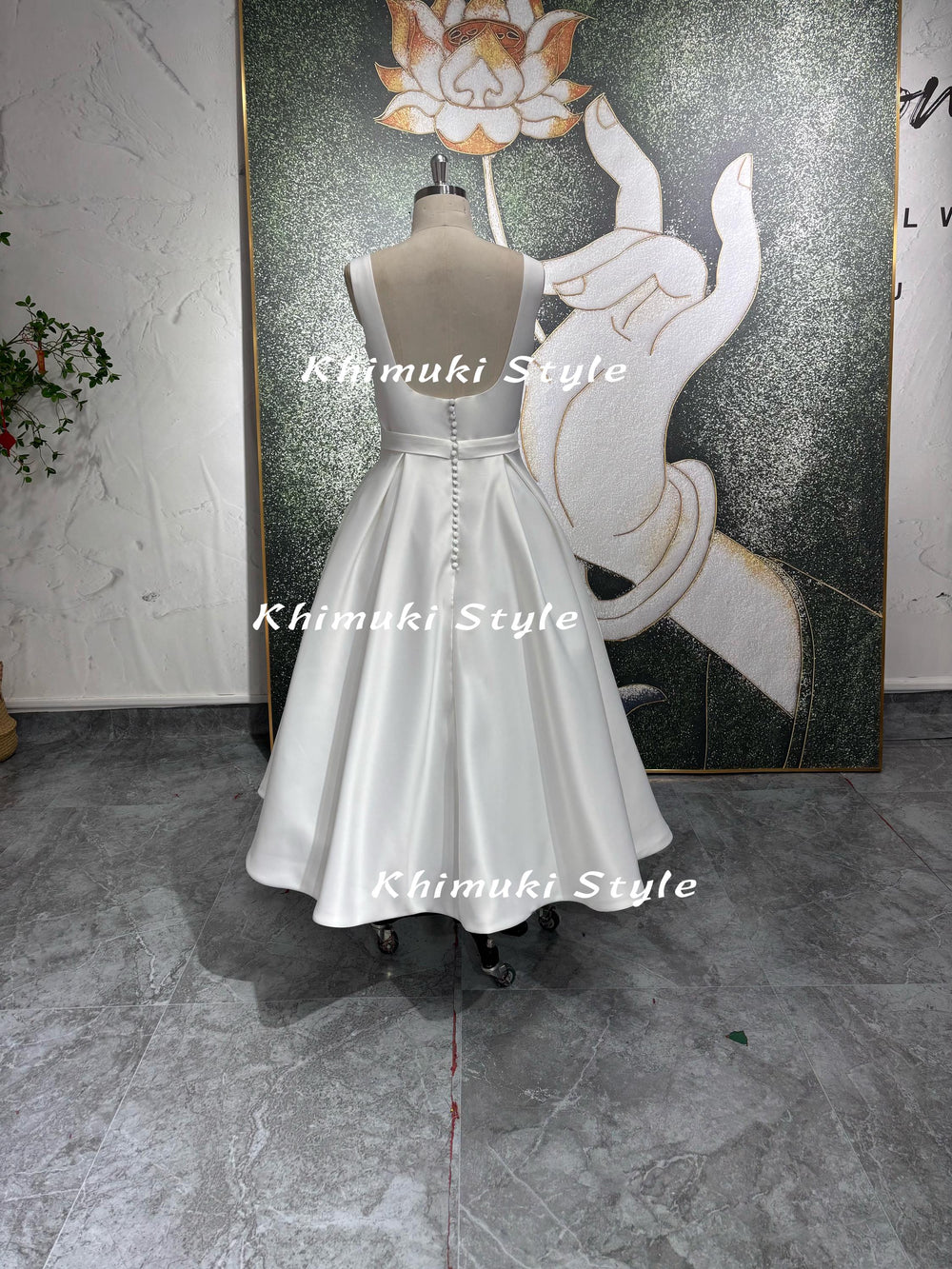 Ankle Length Ivory Satin Wedding Dress,Informal Vintage Wedding Dress